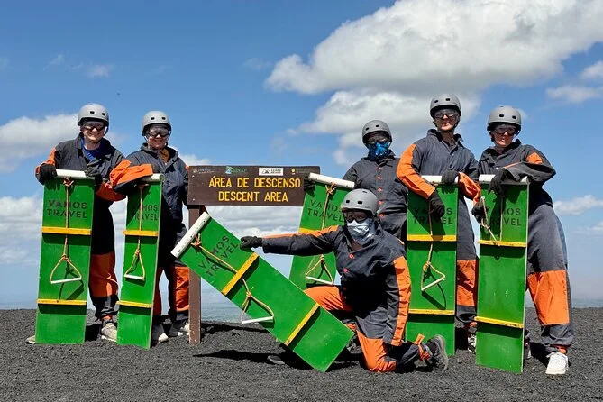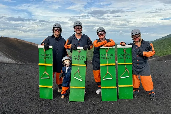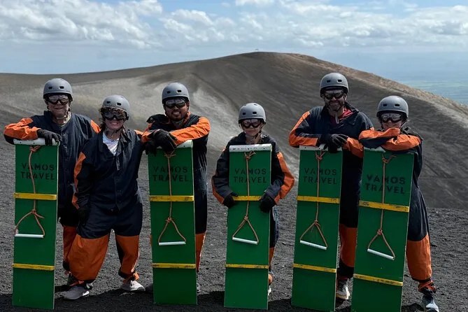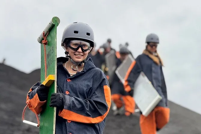 Your day covers pickup in a comfortable vehicle with AC, entry fees to Cerro Negro Volcano, all essential boarding equipment—helmet, suit, goggles, gloves—and even board hauling so you don’t have to carry it uphill yourself. A bilingual guide leads the way and there’s a cold sports drink waiting once you reach the bottom.