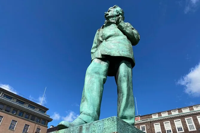 We walked past KODE Art Museums (I peeked in the windows but we didn’t stop), then through little squares where people were chatting in Norwegian and laughing at something I couldn’t catch. The guide pointed out where Edvard Grieg used to play piano as a kid — I tried to imagine him as a small boy here, but honestly all I could picture was his wild hair. She told us about Henrik Ibsen too, but what stuck was her talking about how locals still argue about which bakery does the best skillingsbolle (cinnamon bun). I nearly bought one but figured I’d never keep up with the group if I did.