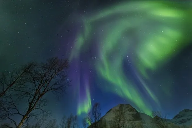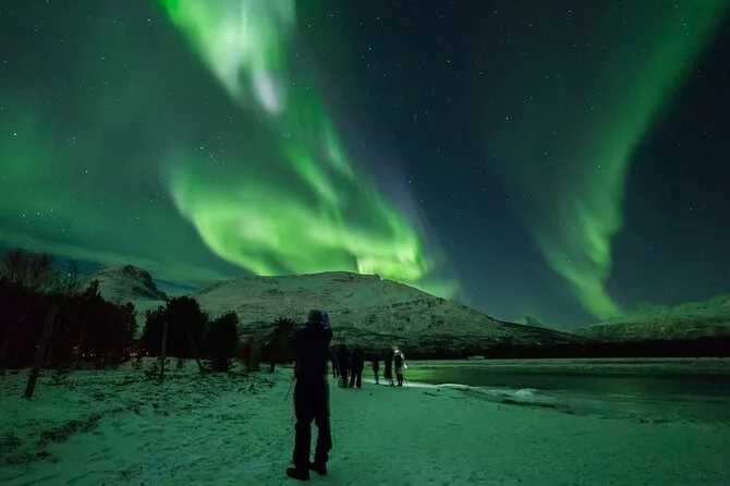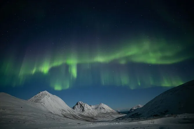 You’ll join a small group in Tromso and head out by bus with a local guide to chase clear skies for the northern lights. Along the way you’ll hear stories, sip hot drinks, get help with your camera (and a tripod if needed), plus receive digital portrait photos under the aurora — all moments you’ll remember long after you’ve thawed out.
