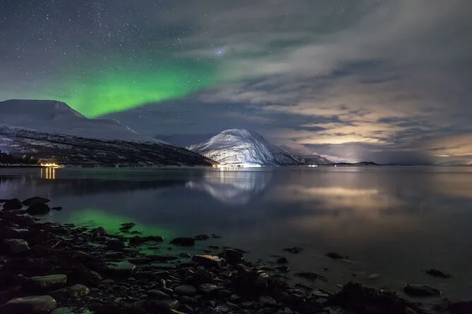 Your evening includes pickup in Tromso city center by bus, guidance from an English-speaking local expert throughout your northern lights chase (with up to 20 guests per guide), use of tripods for photography help if needed, digital portrait photos under the aurora, complimentary coffee or tea with biscuits while waiting outdoors, plus a 50% discount on another tour if you don’t spot any aurora this time around.