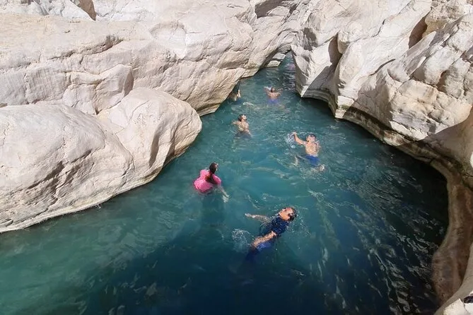 Your day includes comfortable 4WD transport with hotel pickup and drop-off anywhere in Muscat, bottled water throughout the journey, an English-speaking Omani guide sharing stories along the way, visits with Bedouin families (plus coffee and dates), time to swim or relax at Wadi Bani Khalid’s pools—and all without worrying about logistics or entry fees before heading back home again.