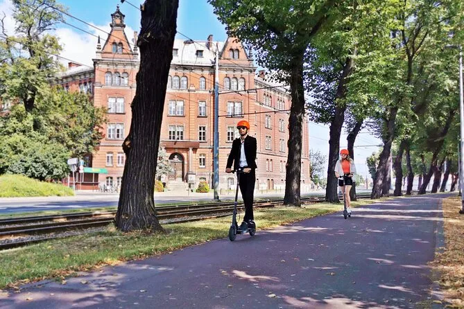 Honestly, I was a bit nervous at first—never tried an electric scooter before. But our guide, Piotr, gave us a quick run-through right by the edge of Zakrzówek. The morning air was cool, and you could hear the city waking up—trams rattling in the distance, someone selling obwarzanki from a cart nearby. Helmets on, we wobbled for maybe two minutes, then it just clicked. Zipping through Kazimierz felt like cheating time; we covered so much ground without breaking a sweat.
