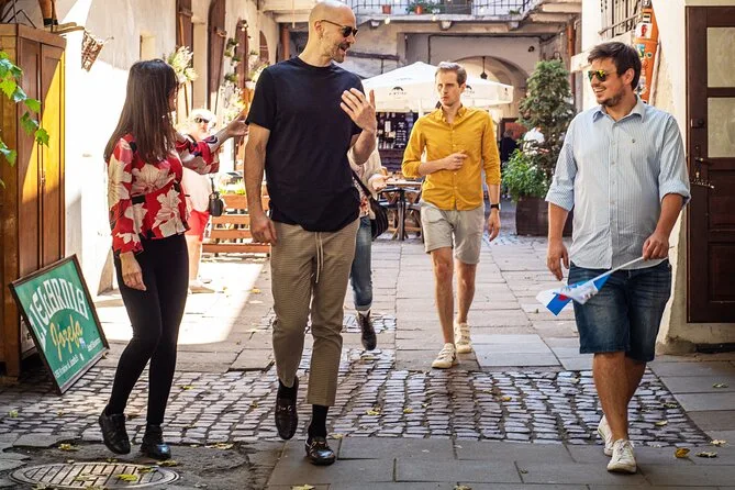 Your evening includes an English-speaking local guide leading you through Kazimierz’s streets with stops for 13–14 different Polish foods plus two vodkas, craft beer, and dessert—all shared in a small group atmosphere that feels more like friends out together than anything formal.