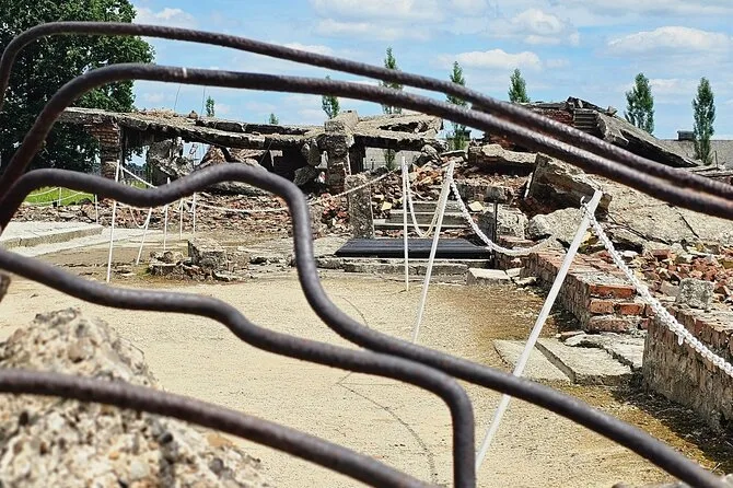 You visit both Auschwitz I and Birkenau (Auschwitz II), including original barracks, memorials like the Death Wall, gas chambers (where permitted), railway ramp, and preserved ruins.