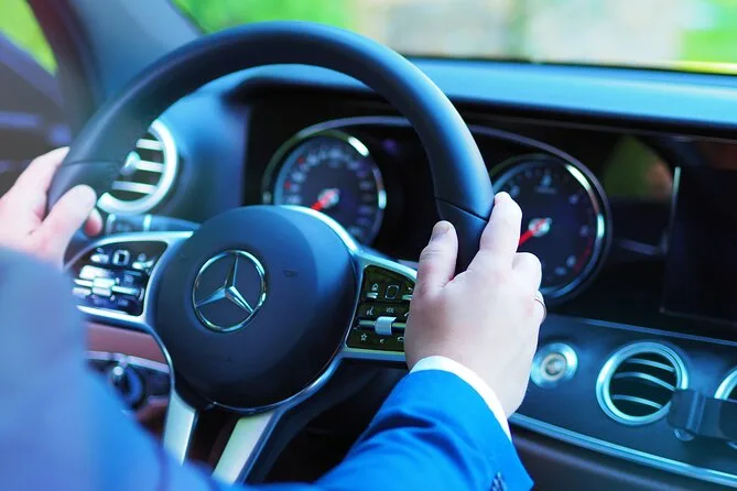 Our driver, Marek, was already waiting in the lobby when I came down — honestly, I was still half-asleep and clutching my coffee like a lifeline. He greeted me with a quiet “Dzień dobry” and a little nod that made me feel like things were under control, even if my suitcase wasn’t quite zipped yet. The car (a Mercedes, which felt slightly fancier than I expected) smelled faintly of fresh upholstery and something floral — maybe one of those air fresheners? Anyway, it was clean and warm inside, which mattered more than I thought since Kraków’s morning air had this damp chill that clung to my jacket.