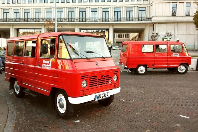 Your day includes hotel pickup by retro Żuk minibus with heating in winter (no air conditioning), all guided walks through Muranów and Praga led by a knowledgeable local guide, plus plenty of stories along the way before returning you back at your starting point.