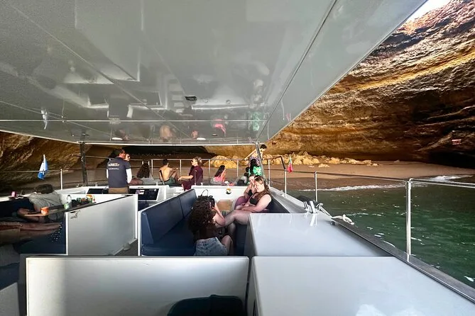 Your day includes all fees and taxes covered up front; comfortable seating with access to an onboard bar and restroom; guidance from a local expert who shares stories along the route; plus time for swimming if conditions allow before returning to Portimão Marina.