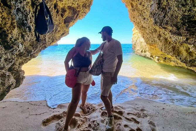 You’ll hike dramatic Algarve cliffs near Benagil with a small group and local guide, seeing sea caves like Algar Seco and hidden beaches below Senhora da Rocha. Pause for stories at ancient rock formations, try a diving mask if conditions allow, and relax at quiet chapels or sandy coves before heading back to Faro.