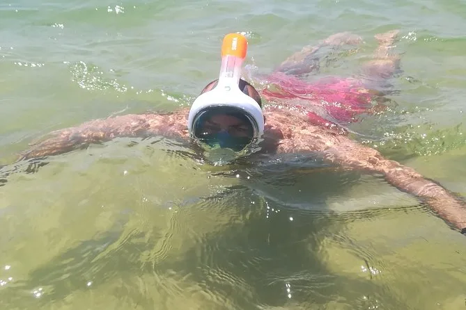 If weather and sea conditions allow at Praia Nova Beach, you can swim or snorkel using provided masks.