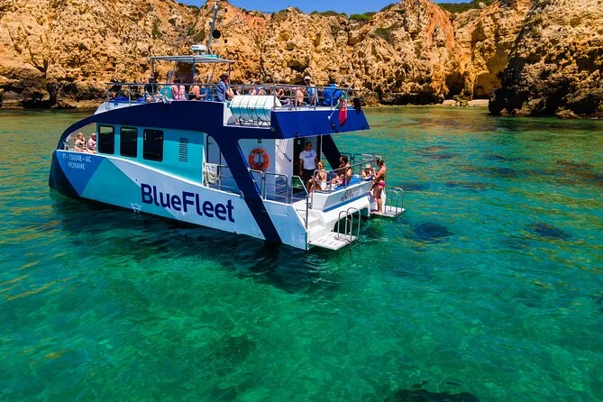 Your day includes live commentary from your local guide as you cruise along Lagos’ coastline past Praia Dona Ana and Praia do Camilo toward Ponta da Piedade. There’s cushioned seating on board plus easy stairs for getting into the water during your swim stop before heading back to port together.