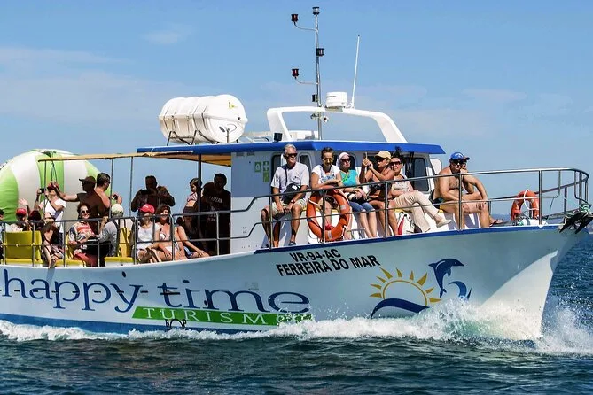 Your day includes cruising from Lagos marina along beaches like D. Ana and Camilo before anchoring near Ponta da Piedade lighthouse; you’ll explore caves by small boat, swim or try out an aqua trampoline with drinks provided onboard—plus shaded seating, music and even a WC for comfort throughout.