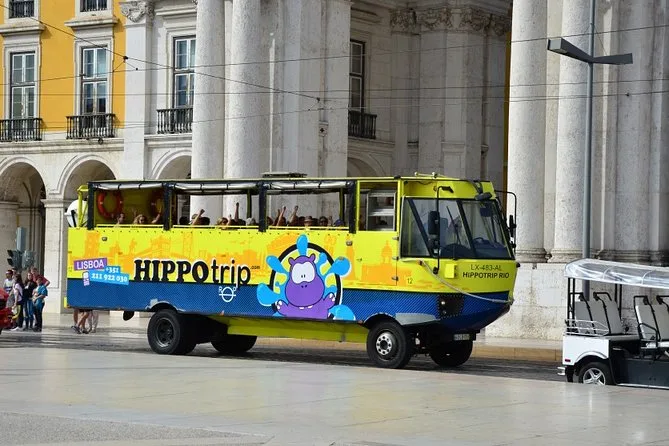 You’ll ride through Lisbon’s grand boulevards and markets before splashing straight into the Tagus River—all without changing seats. Expect live stories from your local guide, up-close views of Belém Tower and Monument to the Discoveries, plus that strange thrill of being both tourist and kid again for 90 minutes.
