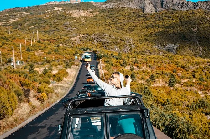 Your day includes hotel pickup and drop-off anywhere around Funchal or nearby areas, all transport by 4x4 jeep with live commentary from your local driver-guide throughout the journey, entry fees where needed, plus a traditional lunch stop in Santana village (with time to try local dishes) before returning late afternoon or early evening.