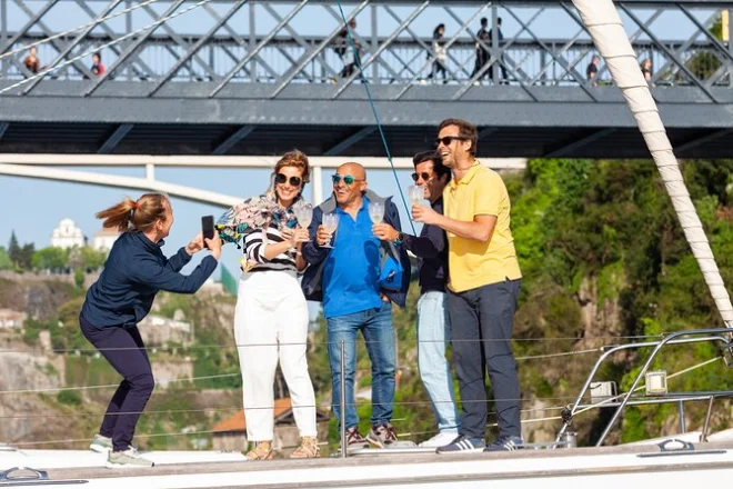 I’ll be honest, we almost missed the boat — literally. Our taxi got stuck behind a tram (classic Porto), so we arrived at the Douro Marina a bit flustered and out of breath. The crew just grinned and waved us aboard like it happens every day. I’d never been on a 15-meter sailboat before; the deck felt solid but there was that faint sway, enough to remind you the city looks different from the water. There was a group from Lisbon next to us who immediately started chatting about football — I pretended to follow along, but mostly watched the old Rabelo boats bobbing by the quay.