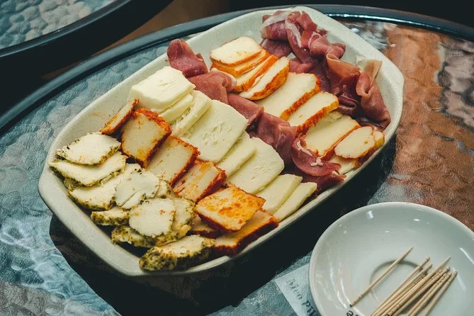 You’ll taste 10-12 different petiscos such as Portuguese sausages and cod fish specialties.