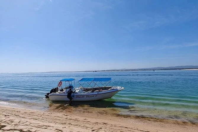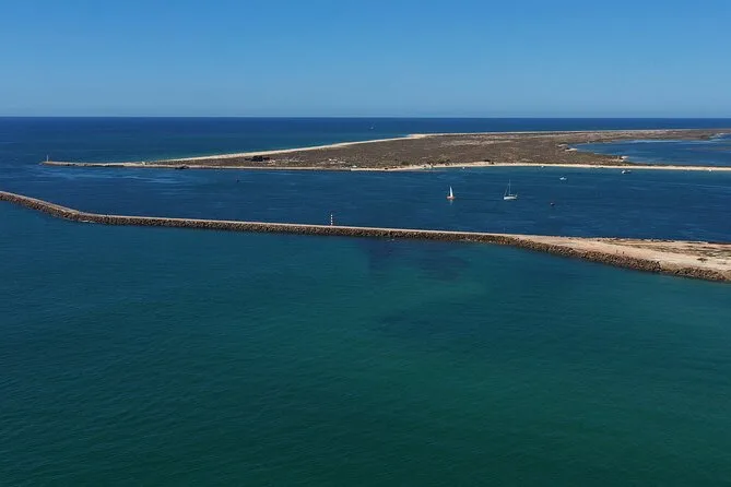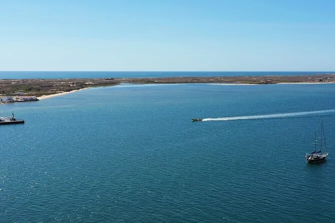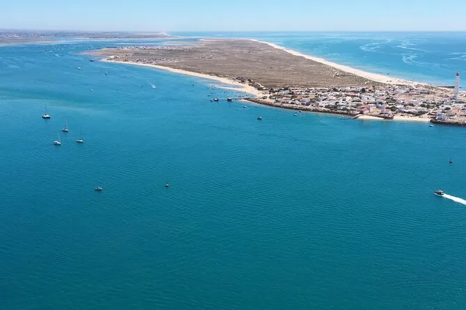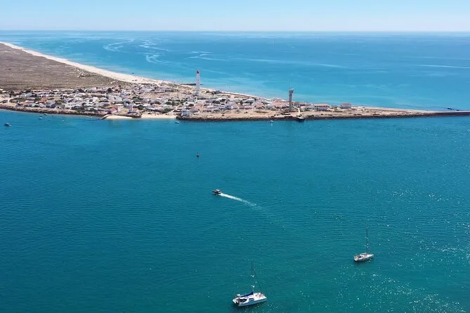 The tour stops at Farol Island, Culatra Island (with lunch break), and either Praia Deserta or Armona Island depending on weather.