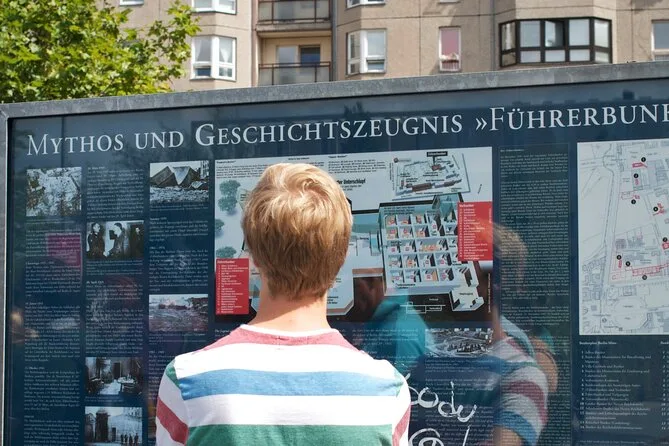 Você visita o local do bunker de Hitler, Wilhelmstrasse, Reichstag, Memorial Soviético no Tiergarten, Memorial do Holocausto, área do museu Topografia do Terror, prédio do Ministério do Ar e outros.