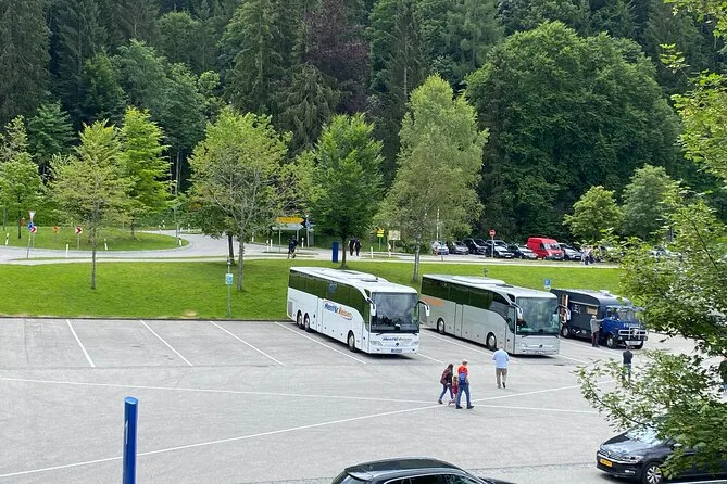 Seu dia inclui toda a organização do transporte desde Munique — com ingressos para o ônibus até o Eagle’s Nest — além da entrada no Dokumentationszentrum Obersalzberg e passeio guiado a pé pela cidade de Berchtesgaden, com guia falando inglês o tempo todo. O veículo é climatizado para garantir conforto mesmo se o tempo na montanha mudar.