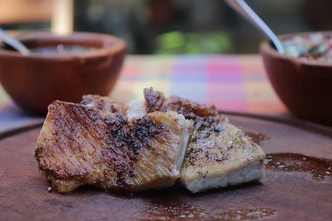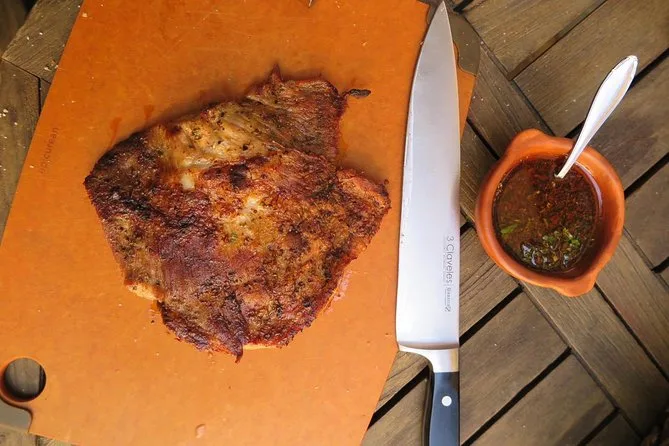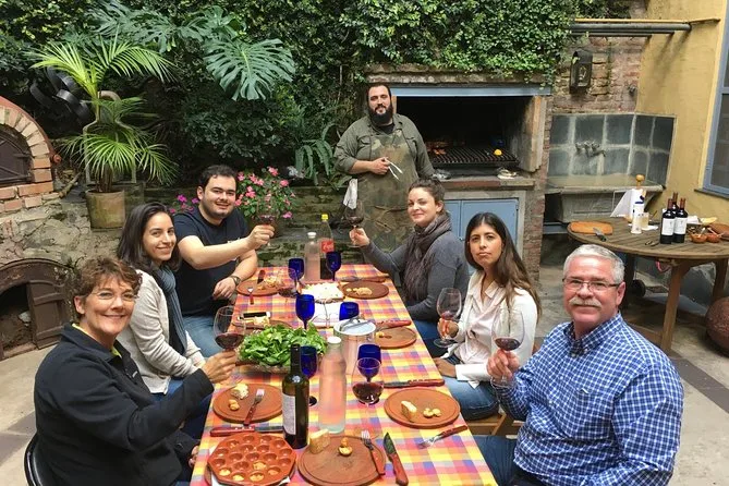 Seu dia inclui caminhada por Palermo Viejo com guia local; todas as comidas e bebidas da entrada à sobremesa, além de água; degustação de vinho com charcutaria em loja local; aula prática de asado; uso de cozinha profissional; almoço no jardim com carnes grelhadas ou opção vegetariana; e mate para finalizar — tudo isso numa tarde tranquila antes de você voltar a explorar Buenos Aires.
