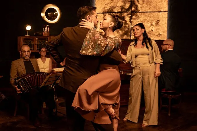 Você vai sentar a poucos metros de dançarinos e músicos de tango de alto nível em um espaço escondido em Buenos Aires — sem palco, sem distância — enquanto degusta um vinho local e absorve cada detalhe. Com uma anfitriã bilíngue guiando você por um show íntimo e improvisado, você vai se sentir parte da história, não só um espectador.