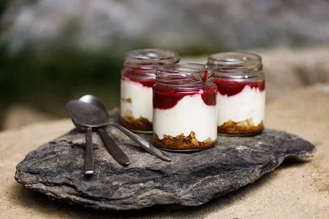 Sim, o almoço rústico é servido na Cueva del Arroyo, com vinho e sobremesa.