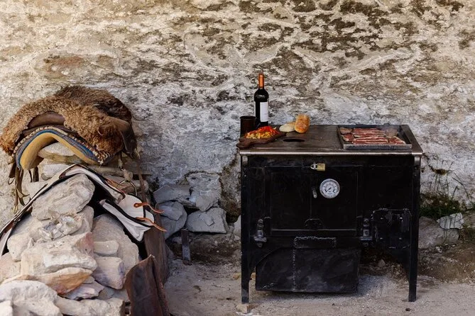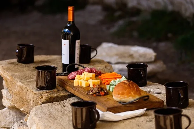 O almoço foi numa caverna chamada Cueva del Arroyo. Os gauchos já tinham acendido a fogueira quando chegamos — a fumaça subindo até o teto de pedra, misturada com cheiro de pão e carne assada. Tentei agradecer (“gracias por la comida”), mas acho que falei errado; um deles só sorriu e me entregou um copo de vinho mesmo assim. Comemos sentados em bancos rústicos, passando uma torta de queijo no final (não esperava por isso). No caminho de volta, fiquei pensando em como tudo ali parecia antigo — não só as pedras, mas também as histórias que o Martín contou sobre o avô dele trabalhando nessas terras.