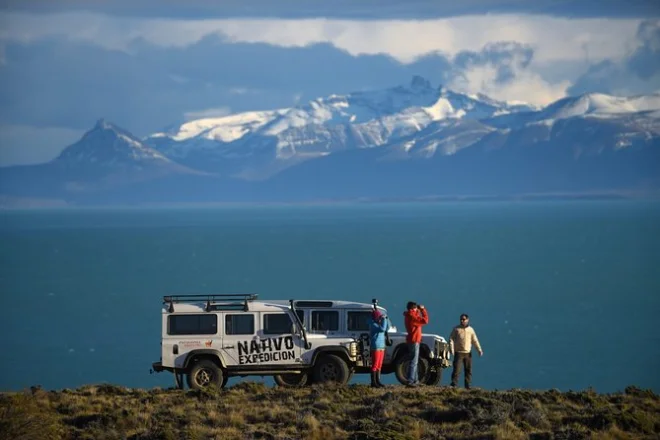 O grupo viaja em veículo 4x4 pela costa do Lago Argentino, com traslado incluso saindo dos hotéis em El Calafate.