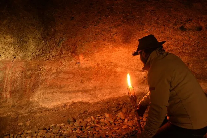 Seu dia inclui traslado do hotel em El Calafate em veículo 4x4, entrada no sítio arqueológico Punta Walichu para ver pinturas rupestres antigas com interpretação do guia local, além de uma refeição completa — sopa de abóbora, ensopado de cordeiro no pão (ou opções para dietas especiais), mousse de chocolate e bebidas — tudo servido dentro de uma caverna à beira do lago antes do retorno.