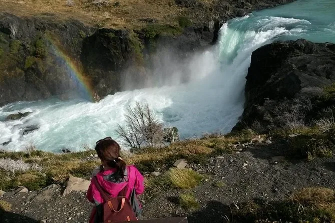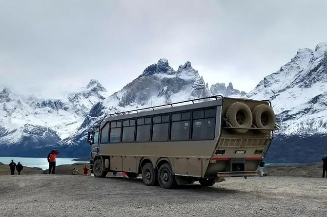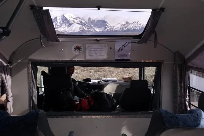 O dia inclui traslado de ida e volta do hotel em El Calafate, viagem em caminhão 4x4 com ar-condicionado e apoio, ajuda com a passagem da fronteira para o Chile, almoço em marmita ao ar livre perto da Cascada Paine, todas as caminhadas guiadas dentro do parque Torres del Paine — com paradas nos principais mirantes — e o retorno ao entardecer pela estepe.