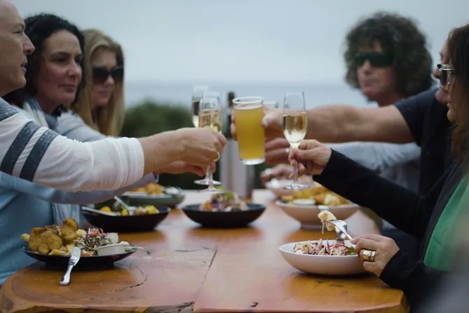 Você vai provar queijos premiados, ostras fresquinhas, mel local, fudge artesanal, cerveja ou hidromel, além do almoço com bebidas em Adventure Bay.