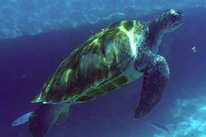 A primeira parada foi para snorkel com tartarugas. Eu nunca tinha feito isso antes e meio que me atrapalhei com a máscara (o Marcus deu uma rápida ajuda — sem me fazer sentir bobo). A água estava mais fria do que eu imaginava, mas depois que me acostumei... ver aquelas tartarugas deslizando ao lado foi um daqueles momentos que ficam na memória. Não tinha multidão, só a gente e aquele silêncio estranho debaixo d’água, só quebrado pelas nossas bolhas.