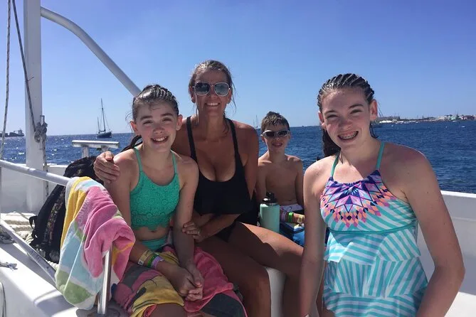Entramos na água pela parte de trás do barco — algumas pessoas usaram o escorregador (eu fiquei com medo). A primeira coisa que senti foi a areia macia sob os pés antes de flutuar. Tinha um brilho prateado por toda parte; de repente, uma tartaruga passou deslizando como se tivesse um compromisso importante. Janelle apontou para uma sombra escura — um dos naufrágios antigos — e juro que dava pra quase ver a história enferrujando lá embaixo. Algumas crianças tentavam perseguir uma arraia (sem chance), e o pai delas ria toda hora que a máscara enchia de água. Tudo era tão tranquilo, parecia que ninguém estava se esforçando demais.