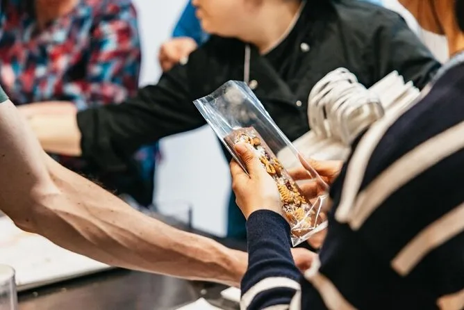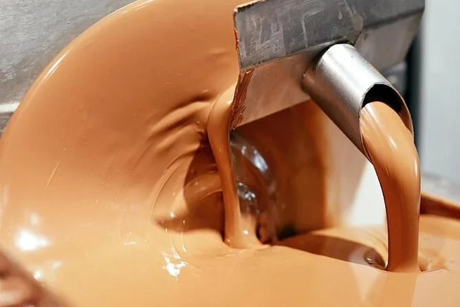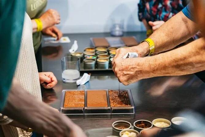 O lugar era mais frio do que eu esperava (eles avisaram), mas, na real, isso ajudou a evitar que o chocolate derretesse nas minhas mãos — o que acabou acontecendo mesmo quando me empolguei demais temperando. Começamos provando um grão de cacau cru direto da vagem. Era tão amargo que minha cara fez uma careta; o Marc riu e disse que é assim que se sabe que é cacau de verdade. Depois experimentamos o licor de cacau puro — nada alcoólico, só denso e intenso, quase floral se você prestar atenção. Alguém perguntou de onde vinham os grãos, e o Marc explicou que trabalham direto com pequenos produtores e que parte do valor do ingresso volta para eles. Isso ficou na minha cabeça.