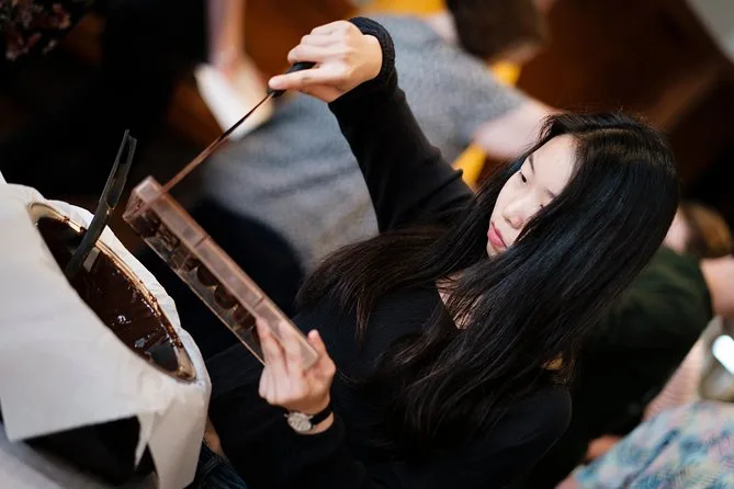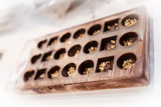 Sua tarde inclui todos os ingredientes e equipamentos para fazer pelo menos 30 chocolates belgas por pessoa — pralinés e mendiants — com ajuda prática de um guia local. Você também vai aproveitar uma pausa para um chocolate quente especial e sair com suas criações embaladas para levar para casa (se elas durarem tanto tempo).