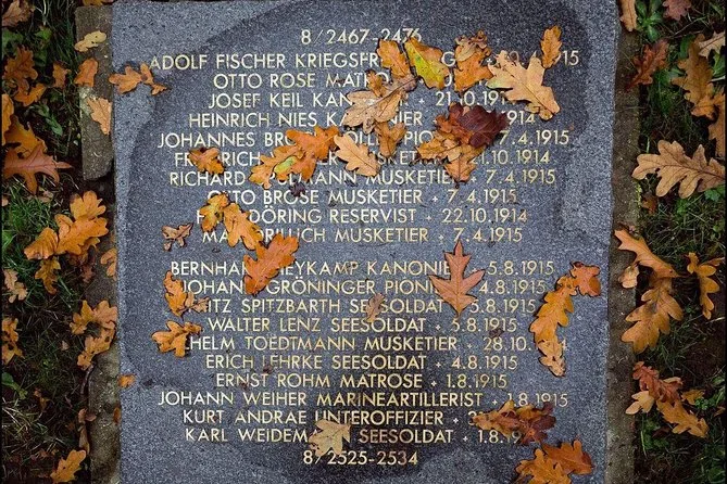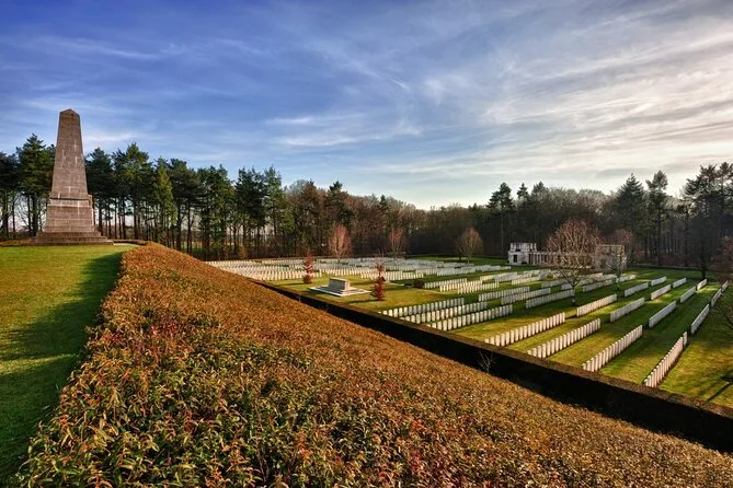 Você conhecerá o Cemitério Alemão de Vladslo, o monumento do Soldado Pensativo em Diksmuide, o campo de batalha de Passchendaele, o Cemitério Tyne Cot, Essex Farm e o Portão Menin para a cerimônia Last Post.