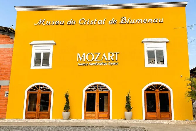 Seu dia inclui um passeio guiado por todas as etapas da produção dentro da famosa fábrica de cristal de Blumenau, entrada no pequeno mas fascinante Museu do Cristal ao lado, tempo para visitar (ou comprar) na loja da fábrica — e você ainda sai com uma taça Mozart Crystal exclusiva de lembrança.