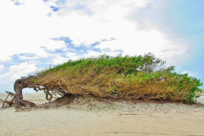 Se você já viu aquelas fotos de redes meio submersas na água turquesa, é aqui mesmo. Tivemos cerca de duas horas e meia para nadar, descansar nas redes (sim, são tão relaxantes quanto parecem) ou simplesmente tomar água de coco na barraca chamada Barraca Alchymist. A água da lagoa é tão cristalina que dá para ver peixinhos nadando entre os seus dedos. Depois de um banho rápido e troca de roupa, paramos na Árvore da Preguiça — um cajueiro torto pelo vento, com aparência selvagem. Nosso guia, Lucas, contou que os locais acreditam que tocar no tronco traz sorte.