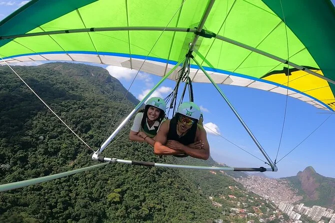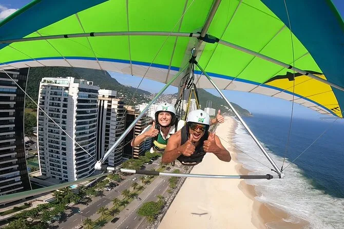 Seu dia inclui transporte privativo com busca e retorno ao hotel na zona sul do Rio, todas as taxas e seguro, equipamentos novos de parapente como capacete e arnês, além de fotos digitais e vídeo GoPro do seu voo duplo antes de voltar para terra firme.