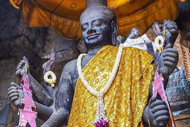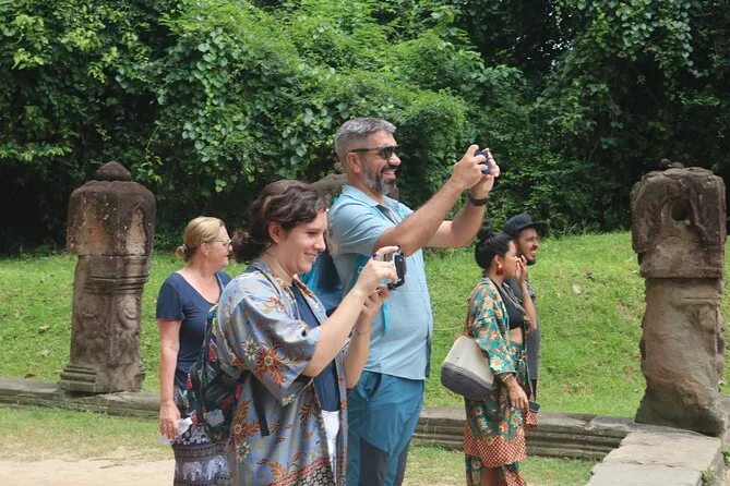 Você vai caminhar pelas galerias antigas de Angkor Wat com um guia local que conhece cada história esculpida na pedra. Veja de perto os rostos misteriosos do Bayon e almoce perto das águas tranquilas do Srah Srang. Termine o dia explorando as ruínas na selva de Ta Prohm enquanto os pássaros cantam — momentos que ficam para sempre depois do Camboja.