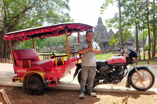 Você será buscado de tuk-tuk direto no hotel e levado para uma noite de comida Khmer e dança tradicional Apsara em Siem Reap. Não é só um jantar — é uma imersão na cultura cambojana, com sabores locais e histórias por trás de cada apresentação. Perfeito para quem quer mais do que só mais uma refeição.