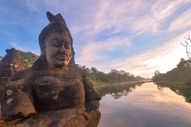 Seu dia inclui traslado de ida e volta do hotel em Siem Reap, guia experiente que fala inglês e compartilha histórias em cada parada, transporte em tuk tuk ou minivan conforme o tamanho do grupo, além de água gelada durante todo o passeio pelos templos lendários do Camboja antes de voltar ao hotel ou ponto escolhido no centro.