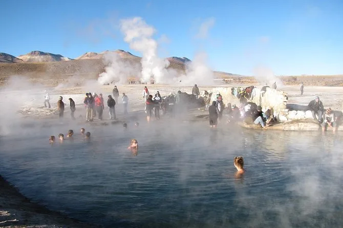 Você vai ver o nascer do sol sobre gêiseres fumegantes a 4.200 metros, tomar bebidas quentes no ar gelado, observar a vida selvagem perto dos rios da montanha e provar petiscos típicos—tudo em uma aventura matinal saindo de San Pedro de Atacama.