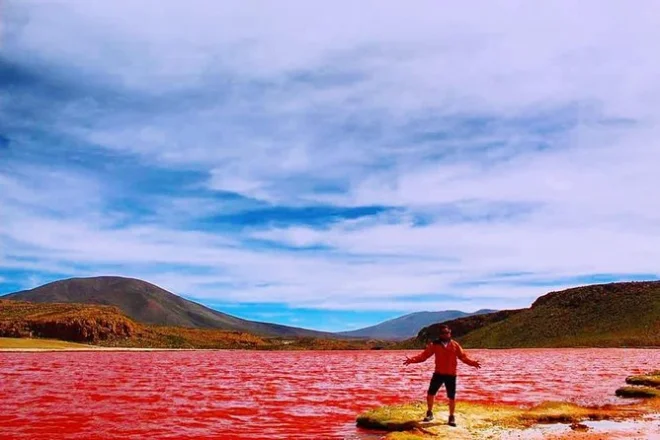 Depois de tirar algumas fotos (a luz é melhor antes do meio-dia), seguimos para a Laguna Roja. A água realmente é vermelha — meio ferrugem, quase surreal contra a areia clara. Há um silêncio aqui difícil de descrever; só o vento e o ocasional canto de um pássaro no alto. Caminhamos pela margem enquanto Javier compartilhava histórias sobre lendas locais ligadas à lagoa. Não muito longe, há uma lagoa verde e outra amarelada — cada uma com sua história e cor, graças aos minerais na água. Ao meio-dia, já estávamos com fome e aproveitamos um café da manhã simples, mas reforçado, bem à beira da água.