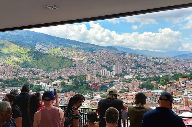 Seu dia inclui seguro viagem, todo transporte dentro de Medellín (com ingressos para o Metrocable), acesso às escadas elétricas da Comuna 13 para ver os grafites de perto, visitas guiadas ao Pueblito Paisa e à Plaza Botero, além de tempo para caminhar pelo Parques del Río — tudo acompanhado por um guia que fala inglês ou espanhol, conforme sua necessidade.