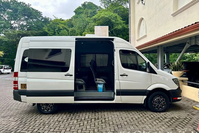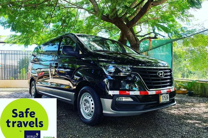 Seu trajeto inclui recepção no Aeroporto SJO por um motorista local com placa com seu nome, transporte privado em veículo recente com WiFi grátis e água mineral, além de paradas flexíveis para fotos ou café — é só avisar o motorista se quiser ver algo ou precisar de atenção especial para crianças ou idosos.
