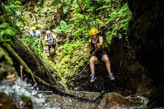 O passeio inclui transporte em veículo com ar-condicionado saindo de La Fortuna ou arredores, todo o equipamento para os cinco rapéis (incluindo a descida épica de 70 metros), água mineral durante a aventura, orientação de guias locais que conhecem cada canto do cânion, e um almoço caseiro típico da Costa Rica na fazenda da família antes de voltar sujo, molhado e feliz.