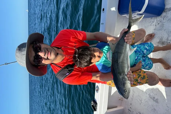 Seu dia inclui todo o equipamento de pesca e snorkel, além de água mineral, cerveja, sucos e lanches frescos como frutas e guacamole servidos a bordo antes do retorno à praia no fim da manhã.