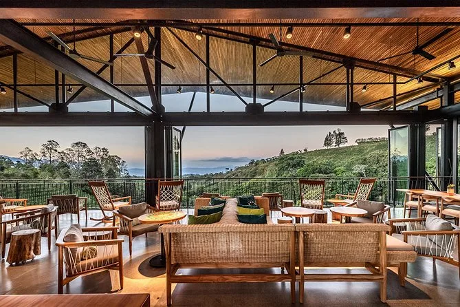 Seu dia inclui uma caminhada guiada imersiva pelas áreas de trabalho da Hacienda Alsacia — viveiro de mudas, moinho úmido, pátio de secagem — e termina com uma degustação de café fresquinho no café local antes de voltar renovado (e provavelmente cheio de energia).