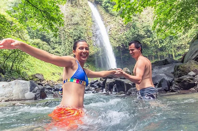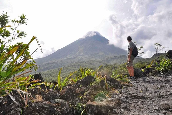 É um passeio de dia inteiro que inclui banho na cachoeira, trilha no vulcão, almoço e visita às águas termais.