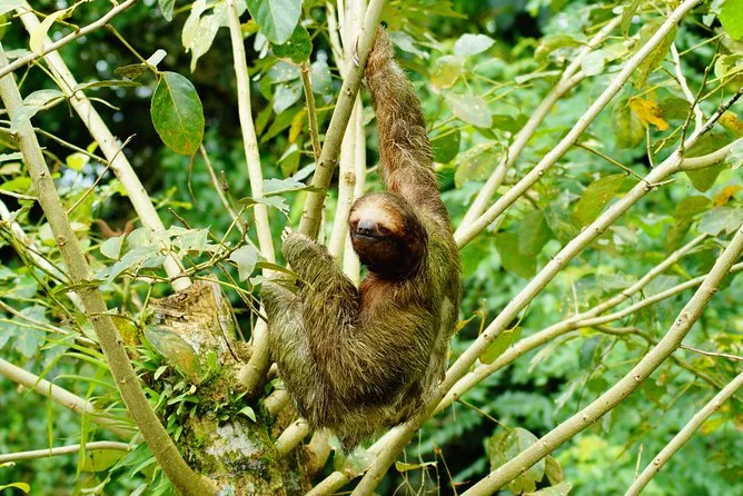 Você pode avistar bichos-preguiça de dois e três dedos, sapos venenosos, tucanos e outras aves durante o passeio.